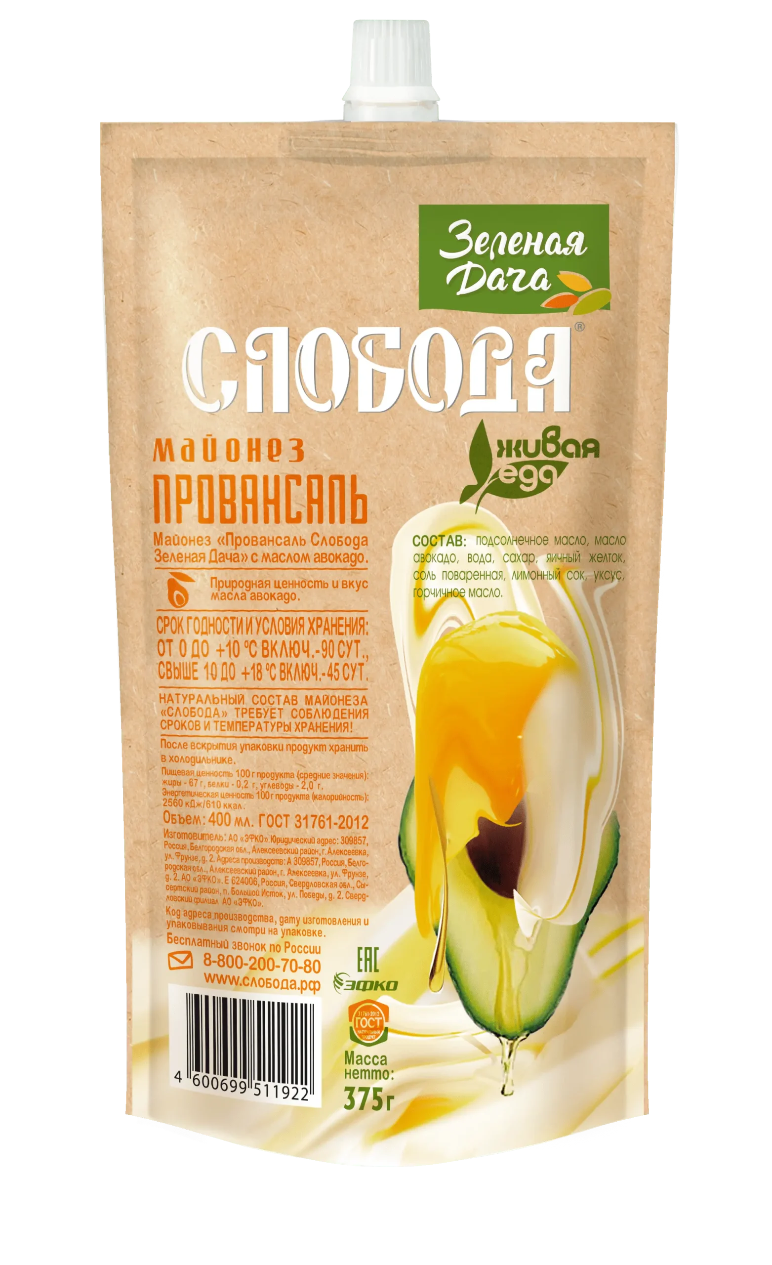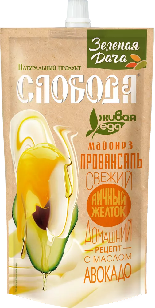 Sloboda Zelenaya Dacha mayonnaise with avocado oil has a new, unique for the Russian market taste with natural additives, having useful properties