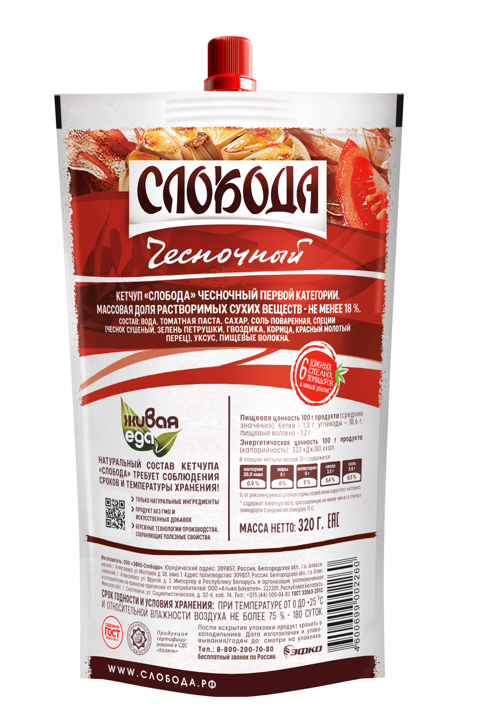 Вода, томатная паста, сахар, соль поваренная, специи (чеснок сушеный, зелень петрушки, гвоздика, корица, красный молотый перец), уксус, пищевые волокна