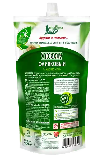 Подсолнечное и оливковое масла, вода, сахар, яичный желток, соль поваренная, лимонный сок, уксус, горчичное масло.