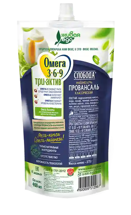 Майонез с комплексом Омега 3-6-9 обладает уникальным вкусом, полученным на основе разработки специальных рецептур и массой полезных свойств для здоровья